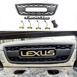 Front Grille For 1998 1999 2000 2001 2002 Lexus LX570 Front Center Mesh Grill Cover With 4 LED Lights Black